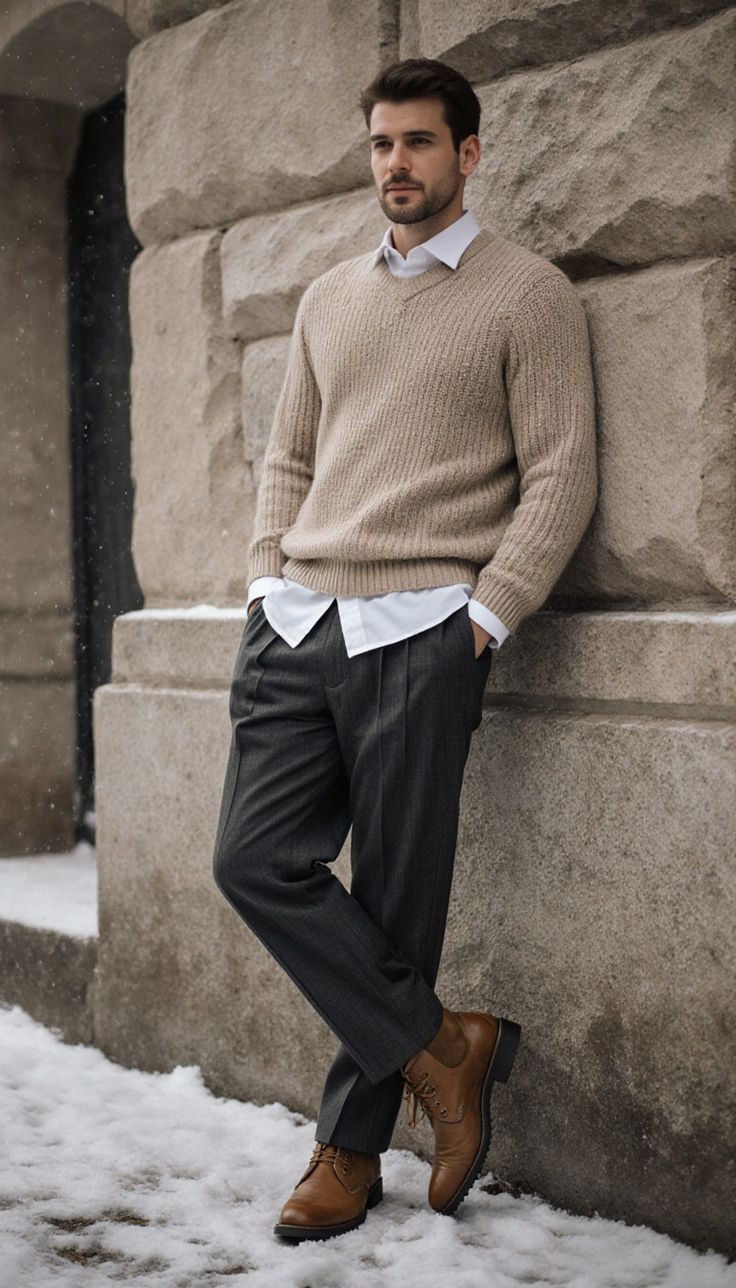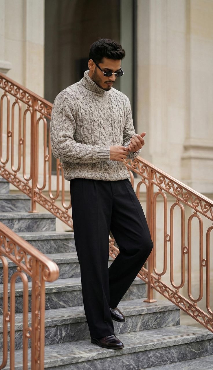 Te buty męskie są wsuwane i mają niską cholewkę z dzianinową fakturą. Z przodu widoczny jest pasek z elementem przypominającym klamrę. Nosek ma zaokrąglony kształt, a na jego górze biegnie przeszycie. Z tyłu znajduje się pętelka. Podeszwa jest gruba i ma warstwowe wykończenie z poziomym paskiem po boku.